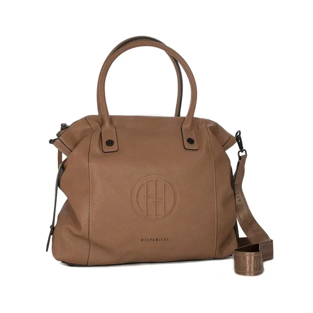 Firma Hispanitasjak sama nazwa wskazuje, została założona w Hiszpanii, a wieloletnie doświadczenie w projektowaniu i produkowaniu obuwia oraz torebek sprawiło, że kolekcje Hispanitas zyskały popularność na całym świecie. Marka jest doceniana za doskonałą stylistykę, nowoczesne wzornictwo i wygodę. Oferta marki Hispanitas obejmuje między innymi torby i torebki damskie wykonane z najlepszej gatunkowo skóry. Torby powstają z zastosowaniem nowoczesnych technologii, dzięki czemu są wyjątkowo trwałe. Precyzyjne szycie i klejenie gwarantuje wytrzymałość na rozciąganie i naprężenia, a to z kolei warunkuje wysoką trwałość. Z najnowszej kolekcjimarki Hispanitasprzedstawiamy praktyczną torebkę w kolorze brązowym. Torebka jest zapinana na zamek błyskawiczny, we wnętrzu posiada praktyczną kieszonkę na zamek, która pomieści klucze jak i kosmetyki. Torebka mimo swojego małego kształtu bez trudu pomieści najważniejsze rzeczy, takie jak portfel, klucze, dokumenty czy telefon. W komplecie odpinany pasek, który jest połączony z kieszonką wewnątrz torebki. Na spodzie torby nóżki ochronne. Wysokość rączek wynosi 11cm. Wymiary torebki: 24 cm x 19 cm x 10 cm