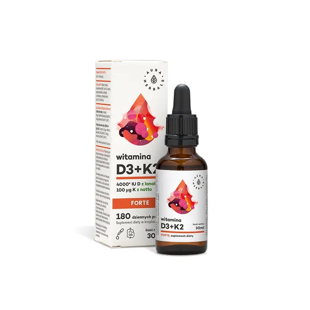 D3 oraz K2 to witaminy rozpuszczalne w tłuszczach. Witamina D3 pomaga w utrzymaniu zdrowych kości oraz w prawidłowym funkcjonowaniu układu odpornościowego. Witamina K2 pomaga w utrzymaniu zdrowych kości oraz przyczynia się do prawidłowego krzepnięcia krwi.