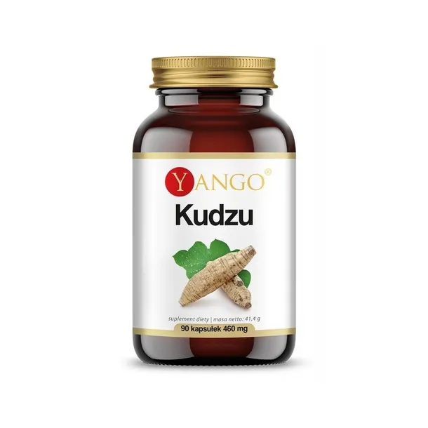 <br />Często uważana jest za winorośl inwazyjną lub nawet chwast, ponieważ agresywnie kolonizuje obszary swojego występowania, osłabiając inne rośliny przez zacienienie ich. Pierwotnie rozpowszechniono je w Europie i USA w XIX wieku, aby zapobiec erozji gleby.OPIS PRODUKTU:Kudzu (łac. Pueraria lobata), inaczej ołownik łatkowaty lub opornik, to liściasta winorośl, występująca w obszarach nadbrzeżnych, polach i poboczach dróg. Kudzu spokrewnione jest z grochem i pochodzi z wysp Pacyfiku oraz wschodniej Azji. Oplata drzewa, krzewy, latarnie i słupy, osiągając nawet do 12 metrów wysokości. Surowcem wykorzystywanym w zielarstwie są strąki i korzenie. W użytku ludowym Chińczycy nazywają je ge-gen.<br /><br />SKŁADNIKI:Ekstrakt z kudzu (Pueraria lobata) 10:1 Skład kapsułki: Celuloza roślinna (wegetariańskie) <table border="3"><tbody><tr><td> Składniki:1 kapsułka2 kapsułkiEkstrakt z korzenia kudzu 10:1370 mg740 mgSPOSÓB UŻYCIA:Jedna kapsułka 2 razy dziennie. Kapsułkę połknąć i popić dużą ilością wody, po posiłku.PRZECIWWSKAZANIA:Przeznaczony dla osób powyżej 18 roku życia. Nie zaleca się podawania dzieciom, kobietom w ciąży i karmiącym.SPOSÓB PRZECHOWYWANIA:Przechowywać w zamkniętym opakowaniu w temperaturze pokojowej, w sposób niedostępny dla małych dzieci