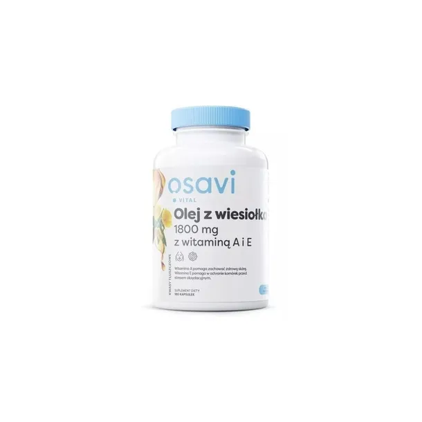 Olej z wiesiołka jest szczególnie przydany w przypadku wsparcia kondycji włosów, skóry i paznokci. Jego regularna suplementacja może skutecznie wpływać na odbudowę nawilżenia i elastyczności skóry. Suplement został wzbogacony dodatkiem witaminy A i E - silnych antyoksydantów.