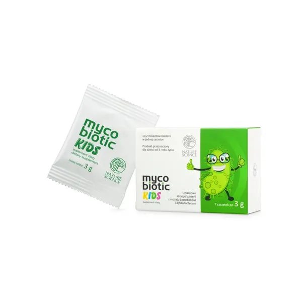 Probiotyk dla dzieci wzbogacający ilościowo i jakościowo skład mikrobiomu jelitowego zawierający unikatowe szczepy żywych bakterii. Bezpieczny w stosowaniu - przebadany klinicznie w kontekście redukowania dolegliwości towarzyszących przerostowi Candida spp. Udowodniono łagodzenie bólu brzucha i wzdęć.