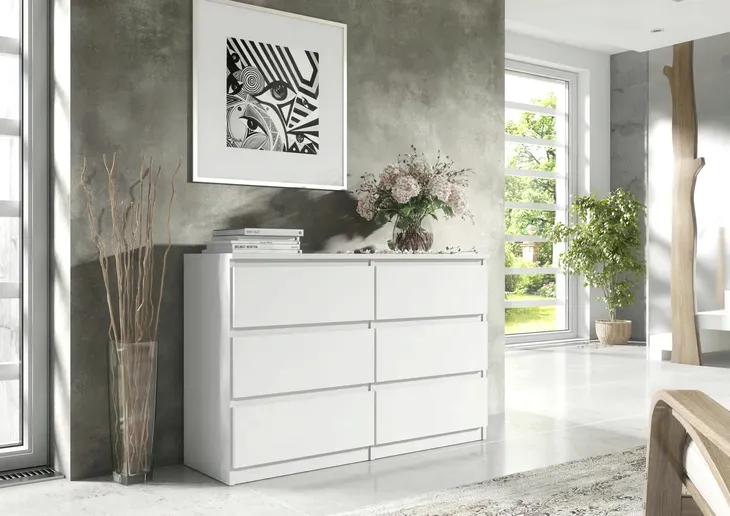BIAŁA KOMODA 140cm 6 SZUFLAD