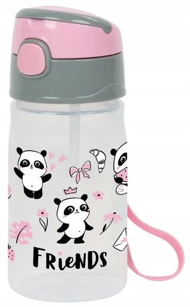Bidon C05 Panda DERFORMPrzezroczysty bidon z nadrukiem o pojemności 330ml. Bidon wykonany z bezpiecznego i wytrzymałego na upadek tworzywa, wolnego od BPA. Posiada chowany ustnik oraz pokrywkę zabezpieczającą, która otwiera się przy pomocy przycisku. Bidon posiada poręczny kształt idealny dla dziecięcej ręki