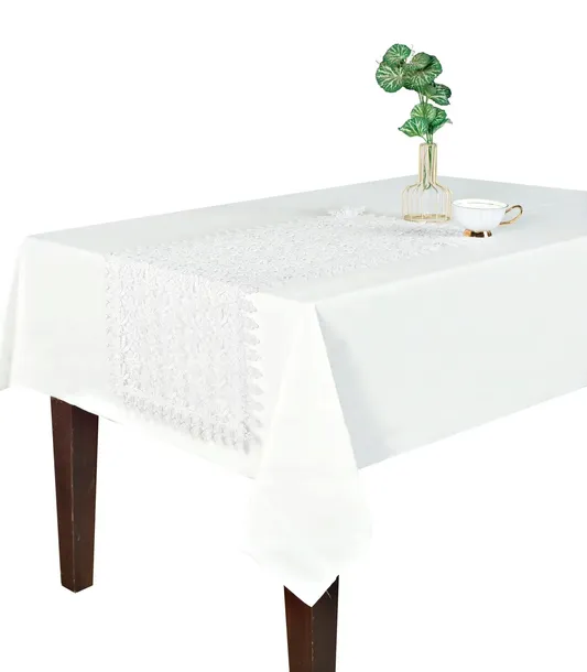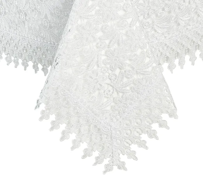 Obrus LARA został w całości wykonany z efektownej gipiury utkanej w kwiatowy wzór. Poliestrowe włókna z których go wykonano zapewniają łatwość w jego utrzymaniu, gdyż można go wielokrotnie prać, bardzo szybko schnie i nie wymaga prasowania.