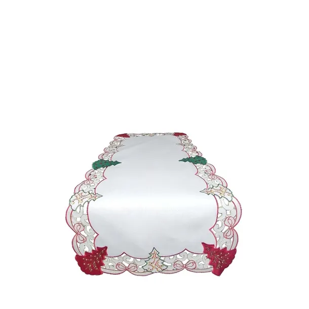 Bieżnik wykonano z wysokiej jakości tkaniny, która łączy estetykę i praktyczność. Starannie wykończone brzegi z dekoracyjnymi elementami dodają mu uroku i sprawiają, że prezentuje się niezwykle efektownie.