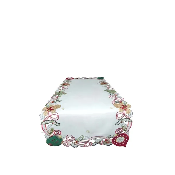 Bieżnik wykonano z wysokiej jakości tkaniny, która łączy estetykę i praktyczność. Starannie wykończone brzegi z dekoracyjnymi elementami dodają mu uroku i sprawiają, że prezentuje się niezwykle efektownie.