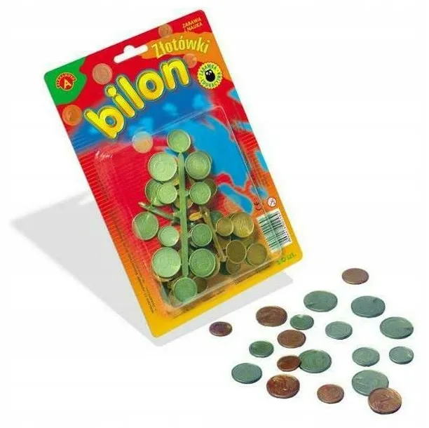 Plastikowe kopie bilonu - złotówki do celów edukacyjnych i ść opakowania36 plastikowych monet o nominałach 10 gr, 20 gr, 50 gr, 1 zł, 2 zł, 5 zł