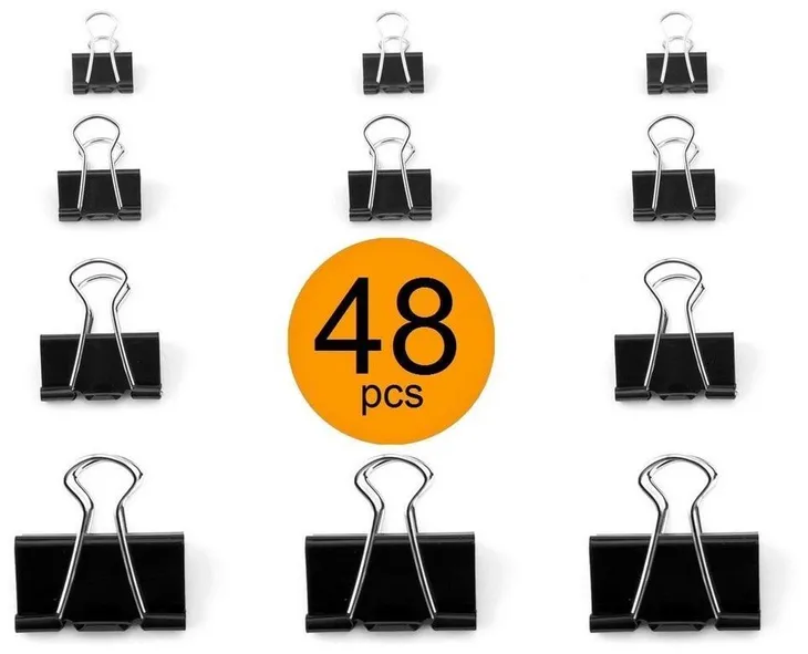 - klipy do papieru- kolor czarny- galwanizowane- rozmiar 15/19/25/32mm- opakowanie 48szt, po 12 szt z rozmiaru