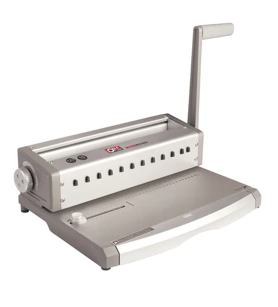 Nowa bindownica do opraw grzbietem drutowym 3:1” (3 oczka na cal). Posiada wskaźniki doboru grzbietu i maksymalnej ilości dziurkowanych kartek. Polecana dla małych biur oraz zakładów usługowych.