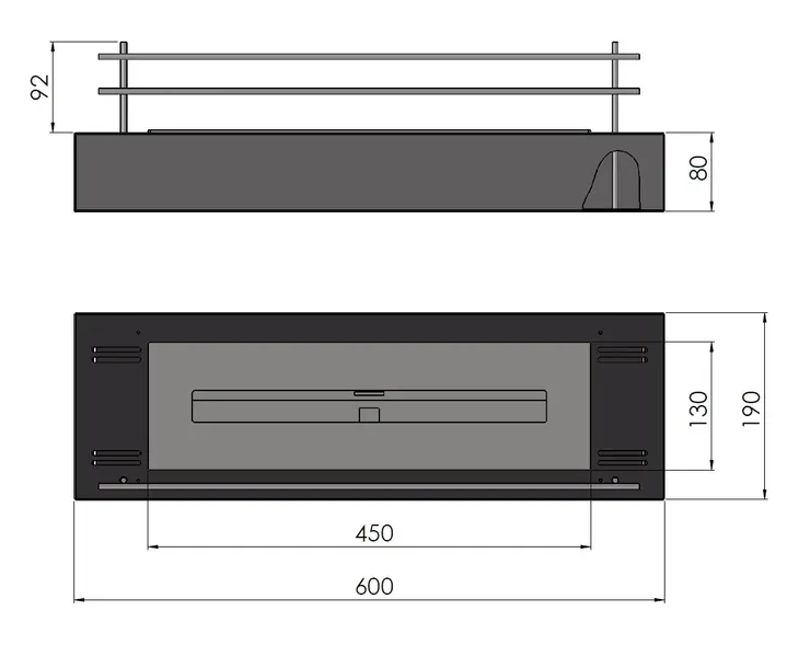 - Zawartość opakowania: biokominek FIREBOX 600, biopalenisko SIMPLE fire FIRE LINE 450, rączki do gaszenia płomienia, zapalniczka, 1l paliwa INFIRE, instrukcja obsługi