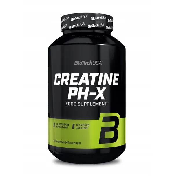 BioTechUSA Creatine PH-X to nowoczesna formuła kreatynowa przeznaczona dla sportowców, którzy oczekują maksymalnych rezultatów treningowych bez niepożądanych skutków ubocznych, takich jak zatrzymywanie wody. Zawarta w produkcie opatentowana formuła CreaBASE (69% monohydrat kreatyny + tlenek magnezu) gwarantuje lepszą stabilność chemiczną kreatyny, a tym samym wyższą biodostępność bez konieczności stosowania fazy ładowania czy dodatków węglowodanowych.