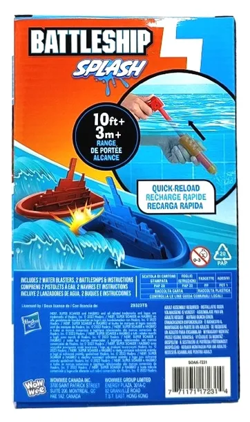Wersja klasycznej gry Battleship to idealna aktywność w wodzie na świeżym powietrzu! Podobnie jak w ulubionej przez wszystkich grze Battleship, gracze w Battleship Splash Game próbują zatopić statki przeciwnika. Ale teraz możesz używać miotaczy wody! Używając dołączonego miotacza wody, napełnij wodą i wysadź statek przeciwnika, próbując go zatopić, zanim on zatopi Twój! Miotacze wody można łatwo napełnić, zanurzając końcówkę w wodzie i pociągając, aby ją napełnić, dzięki czemu można łatwo napełniać ją pomiędzy każdym strzałem! Battleship Splash to gra docelowa, która rozwija umiejętności celowania. Im więcej grasz, tym bardziej rozwijasz swoje umiejętności, dzięki czemu możesz strzelać z większej odległości. Jeśli nie masz basenu do zabawy, użyj basenu dla dzieci, aby unosić swoje pancerniki i spryskać miotacze wody z lądu. Zabawa dla całej rodziny, gra Battleship Splash to świetna zabawa dla wszystkich w wieku 6+. W zestawie z grą Battleship Splash znajdują się 2 miotacze wody, 2 pancerniki i instrukcja obsługi.