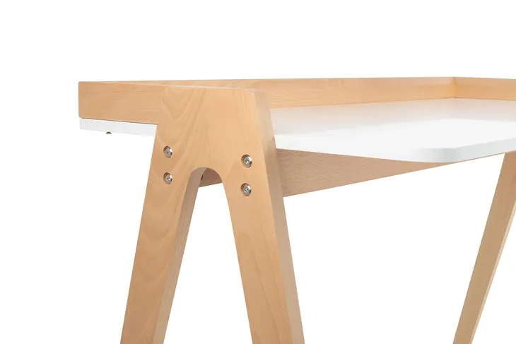 Biurko COMPAS białe Blat biurka wykonany został z płyty meblowej malowanej na kolor biały, natomiast nogi biurka wykonane są z drewna bukowego. Jeśli zatem marzy Wam się sprzyjające skupieniu miejsce do pracy lub nauki, a równocześnie dyskretnie piękny mebel, to biurko Compas ma całkiem spore szanse okazać się strzałem w dziesiątkę.