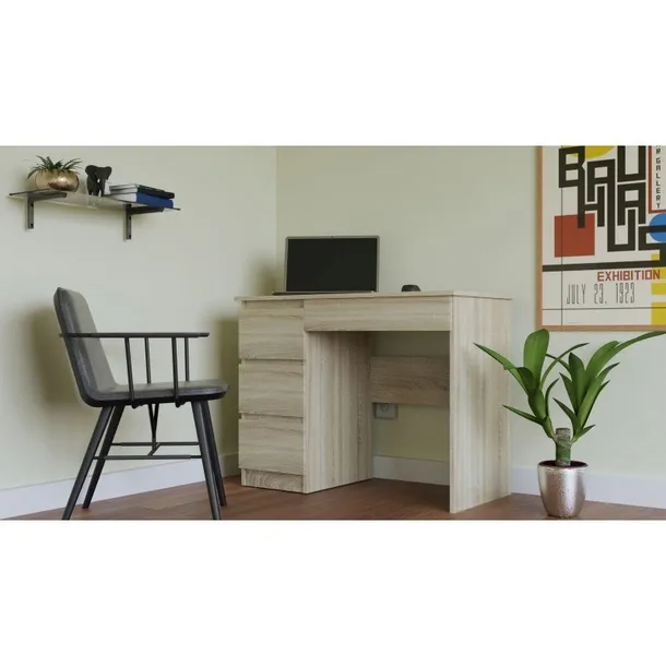 - Dodatkowe informacje: Obrzeża – wykończone tworzywem ABS (charakteryzującym się dużą wytrzymałością mechaniczną i chemiczną), Biurko ma szuflady po lewej stronie (dostępna również wersja z szufladami po prawej), Płyta wiórowa laminowana wyróżnia się odpornością na naprężenia mechaniczne i ekstremalne temperatury, Zdjęcia zestawów przedstawiają przykładową aranżację z innymi meblami z kolekcji. Pozostałe bryły są dostępne w osobnej sprzedaży., Meble do samodzielnego montażu, Gładkie boki bez zaślepek i widocznych otworów, Powierzchnię mebla czyścić przy pomocy miękkiej szmatki. Unikać stosowania silnie działających środków chemicznych