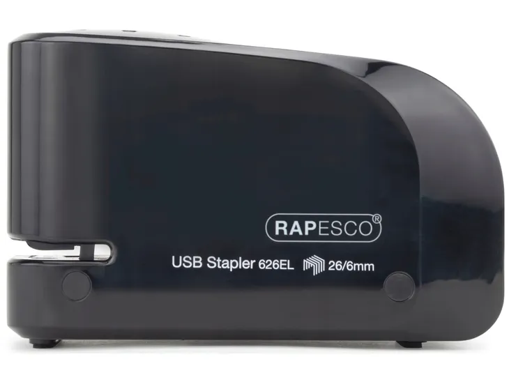 Automatyczny zszywacz Rapesco 626EL może być zasilany przez USB lub baterie, co umożliwia szybkie i wydajne zszywanie do 15 arkuszy papieru o gramaturze 80 g/m2. Zszywacz pół-pasmowy ma wytrzymałą konstrukcję z tworzywa ABS i mieści standardowe zszywki 26/6 mm. System ładowania z przodu ma łatwy dostęp za pomocą przycisku, z ukrytą głowicą zszywającą dla bezpieczeństwa i antypoślizgową gumową podstawą.