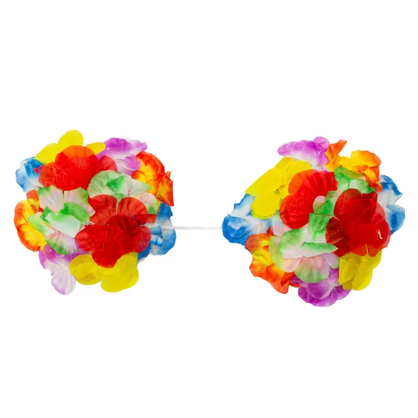 - Biustonosz wykonany z kolorowych, sztucznych kwiatów, z plastikową miseczką