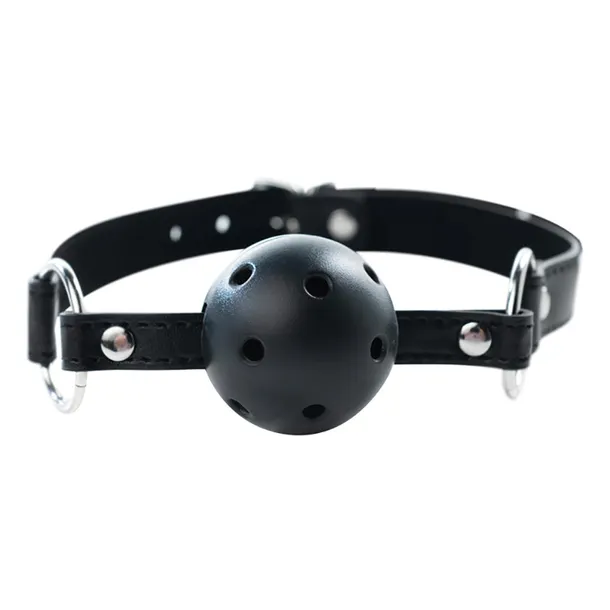 Black breathable ball gag with adjustable strap.