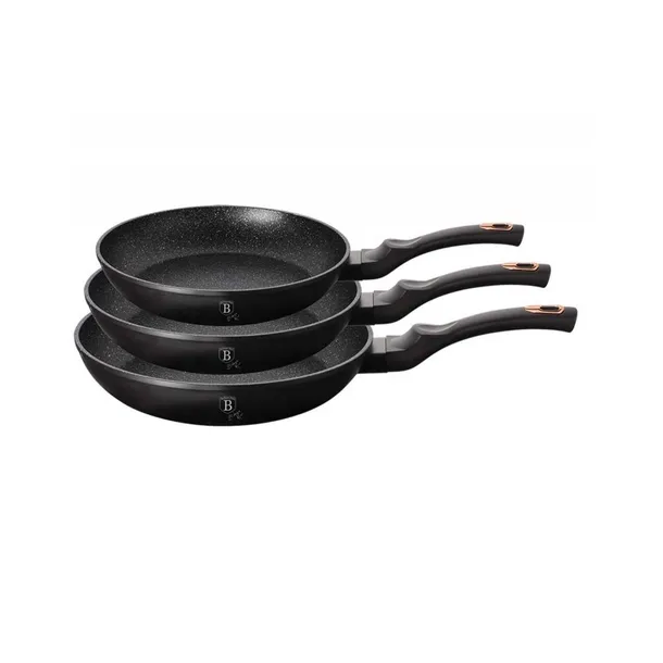 Garnki i akcesoria z serii Black Rose firmy BERLINGER HAUS wykonane są z wysokiej klasy kutego aluminium pokrytego wewnątrz potrójną powłoką granitową (marble) o bardzo wysokim współczynniku twardości. Powłoka zewnętrzna występuje w kolorze czarnym. Te atrakcyjne i modne naczynia wyposażone są standardowo w uchwyty typu SOFT TOUCH (silikon handle). Przystosowane do wszystkich rodzajów kuchenek: gazowa, elektryczna, ceramiczna, halogenowa, indukcyjna. System TURBO INDUCTION (bardzo szybko nagrzewają się) pozwala zaoszczędzić nawet 35% energii.