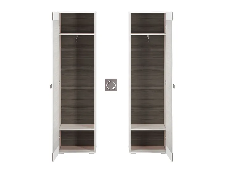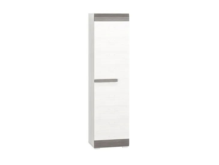 Szafa z 1 drzwiami. Wewnątrz 3 półki oraz uchwyt pozwalający na zawieszenie wieszaków.