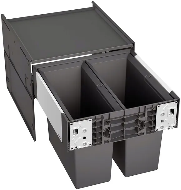 System do wysuwania kosza mocowany do frontu szafki, pokrywa systemowa, 2 x kosz 16 l