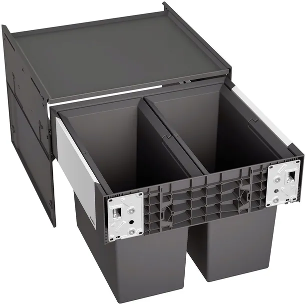 System do wysuwania kosza mocowany do frontu szafki, pokrywa systemowa, 2 x kosz 19 l