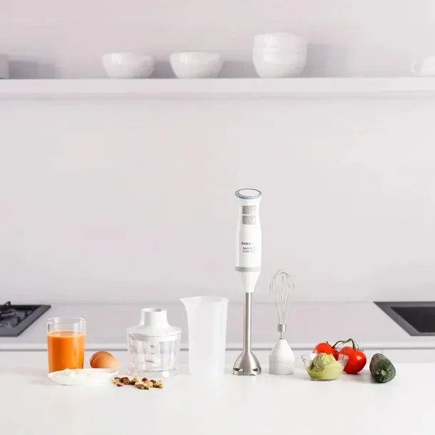 Blender ręczny Taurus BAPI 1200 Pure Plus oferuje moc 1200 W, 20-stopniową regulację prędkości i funkcję Turbo, która pozwala dostosować go do każdego przepisu. Dzięki systemowi Turbo Rotation i ostrzom ze stali nierdzewnej miksuje i sieka produkty z precyzją. W zestawie znajduje się emulgator, rozdrabniacz o pojemności 350 ml oraz miarka o pojemności 500 ml, idealne do różnorodnych przepisów. Ergonomiczna konstrukcja z miękkim uchwytem i osłoną przed rozpryskiwaniem zapewnia wygodę, a wyjmowane, niezawierające BPA i nadające się do mycia w zmywarce akcesoria ułatwiają konserwację. Idealny do łatwego i kreatywnego gotowania.