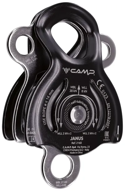 Wysokiej jakości, wielofunkcyjny podwójny bloczek do kompleksowych operacji. Charakteryzuje się dużymi rolkami, głównym otworem mocującym, który pomieści trzy karabinki oraz dwoma bocznymi otworami po bokach i jednym mocującym do liny. Dla lin o grubości max. 16mm. Prusik, węzeł samozaciskowy może być instalowany po obu stronach bloczka. Samosmarowne ślizgi idealnie znajdą zastosowanie podczas wolnego podnoszenia lekkich materiałów.