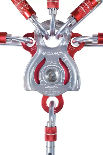 Podwójny, wysokowytrzymały bloczek z ruchomymi kołnierzami firmy CAMP idealnie nadający się do układów blokowych. Bloczek wyposażony w duże koła oraz w duży otwór mocujący, który może pomieścić trzy karabinki. Dodatkowo umieszczono trzy otwory pomocnicze.