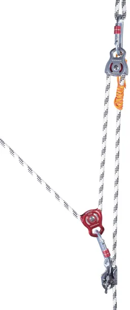 Bloczek został odpowiednio ukształtowany by współpracować z prusikiem. Samosmarujące tuleje są idealne do lekkich zastosowań w niskich obrotach.