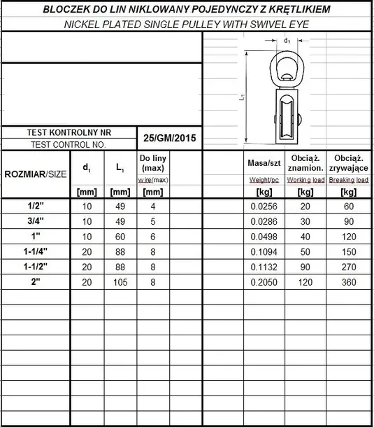 BLOCZEK DO LIN POJEDYŃCZY NIKLOWANY 1-1/2'