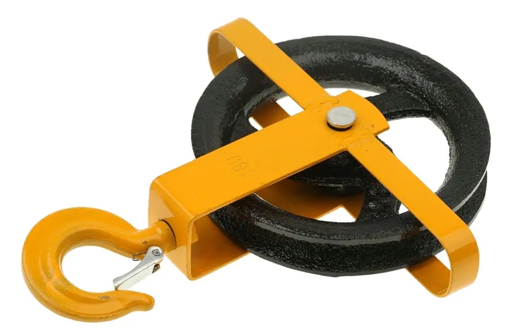 ✔️ Krążek jest zamocowany na żółtym hak z zabezpieczeniem zatrzaskowym, chroniącym przed przypadkowym wypadnięciem liny. Produkt jest blokiem łożyskowanym, co ułatwia szybkie i płynne poruszanie przedmiotem.