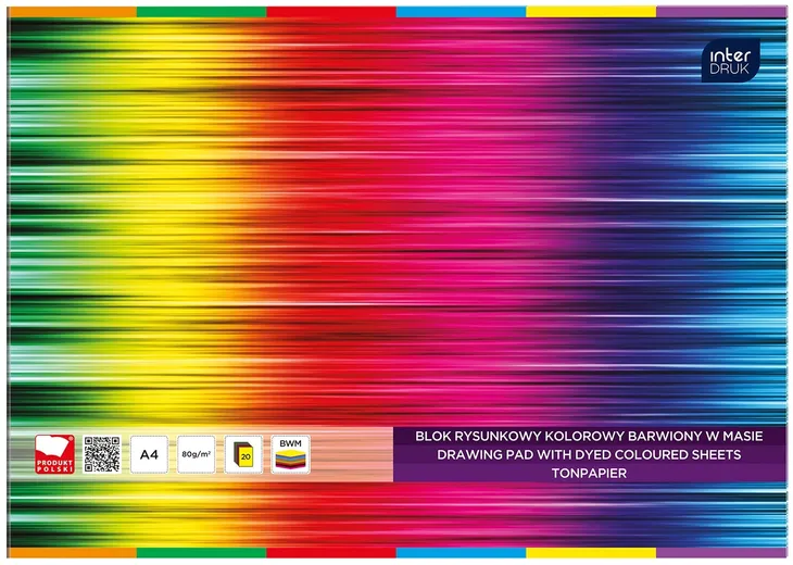BLOK RYSUNKOWY z KOLOROWYMI kartkami A4 20 kartek INTERDRUK zestaw 20 SZTUK