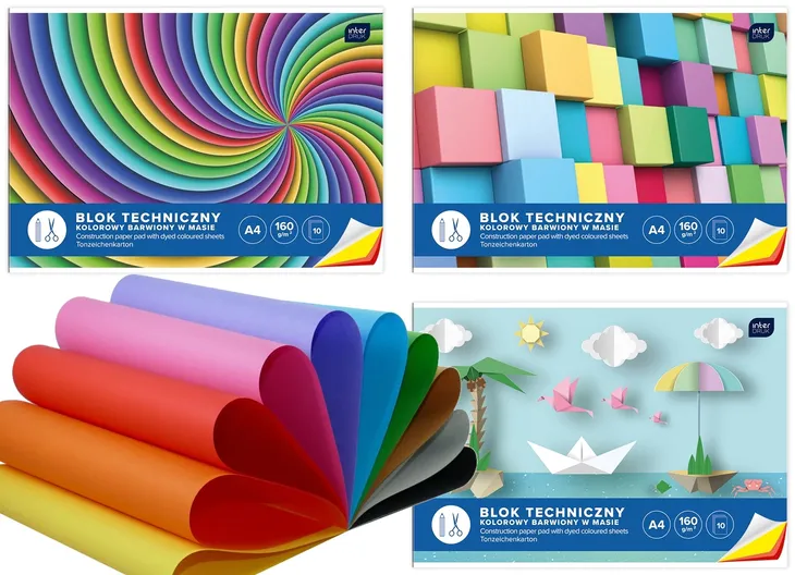 BLOK TECHNICZNY z KOLOROWYMI kartkami A4 10 arkuszy INTERDRUK 10 sztuk