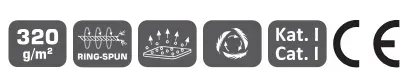 ✓ bawełna typu ring-spun charakteryzująca się wysoką gęstością a jednocześnie miękkością i gładkością, gwarantuje wytrzymałość i odporność na wycieranie oraz zapewnia komfort użytkowania