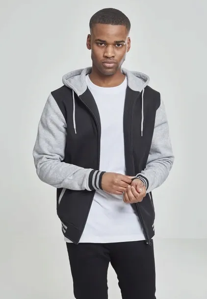The 2 tone version with sleeves in contrasting colors, side pockets and striped cuffs gives this URBAN CLASSICS-Hoody a stylish college look without an artificial retro chic.
