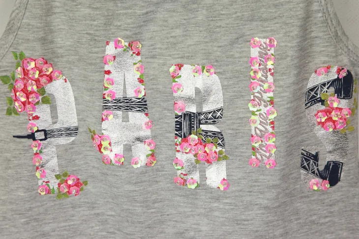Z przodu metalizowany, srebrny nadruk, dodatkowo zdobiona różowymi cekinami ułożonymi w formie kwiatuszków. Na dole wstawka holo, która ładnie mieni pod wpływem świata.