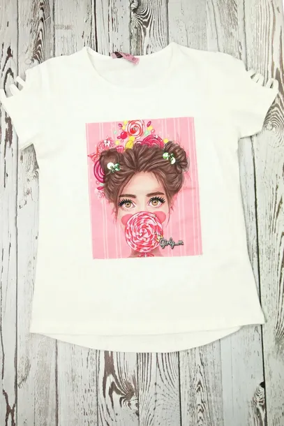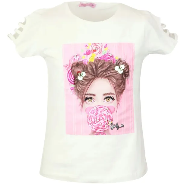 Świetna bluzeczka w kolorze złamanej bieli z cudowną naszywką ozdobioną cekinami, kryształkami oraz perełkami. Każdy detal został pięknie dopracowany. Oryginalnie wycięte rękawki. Idealnie sprawdzi się w porze zimowej i letniej ze względu na krótki rękawek.
