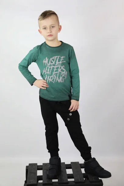 Świetna, dekatyzowana bluzeczka w kolorze butelkowej zieleni. Posiada nadruk w postaci napisów. Idealnie sprawdzi się w porze zimowej czy w letnie, chłodniejsze wieczory.