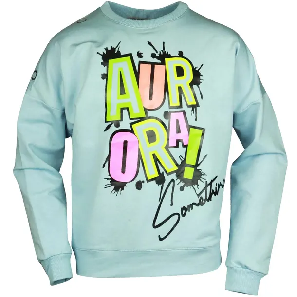 Świetna bluza w kolorze miętowym z nadrukiem w postaci neonowego napisu. Idealnie sprawdzi się w porze zimowej czy w letnie, chłodniejsze wieczory.