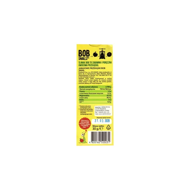 Bob Snail Przekąska jabłkowa z owoców bez cukru 30 g