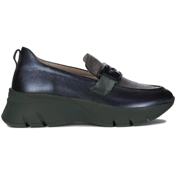 Najnowsza propozycja hiszpańskiej marki Hispanitas, to mokasyny, półbuty damskie wielokolorowe z przewagą koloru granatowego. Cholewka została wykonana ze skóry naturalnej. Wnętrze oraz wkładkę obuwia wykonano ze skóry ekologicznej. "Kropki nad i" dodaje wzbogacenie podeszwyo system TRIFLOW, który zapewnia stopom niebywałą amortyzację podczas chodzenia. Podeszwa to platforma o wysokości maksymalnej 5 cm w miejscu obcasa i 3 cm z przodu. Model z okrągłym noskiem, wsuwany. Model ten idealnie uzupełnia wiele stylizacji - pasuje zarówno do sportowego, luźnego looku jak i bardziej formalnych sukienek i spódnic. W tych butach na pewno wyróżnisz się z tłumu. Kraj produkcji: Hiszpania.