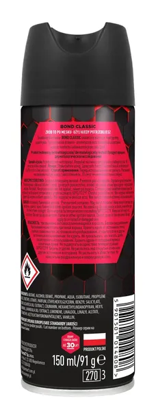 Dezodorant do ciała dla mężczyzn bond classic skutecznie eliminuje nieprzyjemny zapach potu