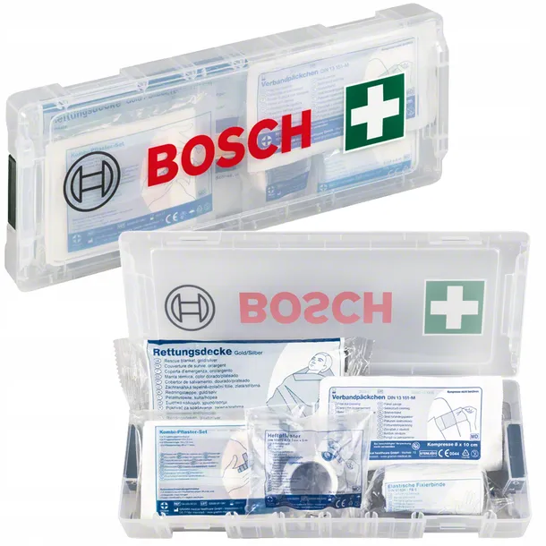 Podstawowa apteczka w lekkiej, przezroczystej i nietłukącej kasecie z elastycznymi separatorami