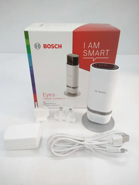 Bosch Eyes Indoor Camera II to inteligentna kamera do monitoringu pomieszczeń przeznaczona do nadzoru domu lub biura. Urządzenie umożliwia podgląd obrazu na żywo oraz otrzymywanie powiadomień o wykrytym ruchu bezpośrednio na urządzeniu mobilnym.