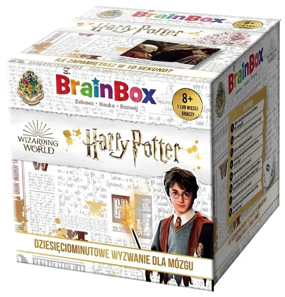 BrainBox - Harry Potter to nie lada wyzwanie dla wszystkich fanów małego czarodzieja. Na 55 kartach znajdziesz kultowe sceny ze wszystkich 8 filmów z serii, a także 440 pytań o ulubionych bohaterów, kluczowe momenty i dialogi. Sprawdź swoją wiedzę z różnych obszarów: od tradycji domów po Ministerstwo Magii!