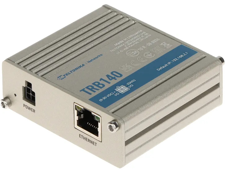 Brama sieciowa TRB140 to kompaktowa, energooszczędna, przemysłowa brama 4G/LTE, umożliwiająca podłączenie urządzenia do sieci Gigabit Ethernet poprzez łącza komórkowe. Urządzenie wyposażone jest w port Ethernet, 1 konfigurowalne cyfrowe wejście/wyjście, port micro USB dla sieci wirtualnej, slot na kartę SIM oraz złącze SMA do anteny LTE (w komplecie). Urządzenie jest zgodne z technologią IoT (Internet rzeczy). Bramą zarządza system operacyjny RutOS i obsługuje protokoły przemysłowe, takie jak Modbus, DLMS, DNP3, OPC UA, a także jest kompatybilna z systemem zarządzania RMS umożliwiając wydajne zdalne i lokalne zarządzanie urządzeniem. Do zarządzania dedykowana jest aplikacja Teltonika RMS Brama Teltonika TRB140 posiada 4-pinowe przemysłowe gniazdo zasilania oraz obsługuje szeroki zakres napięć zasilania.