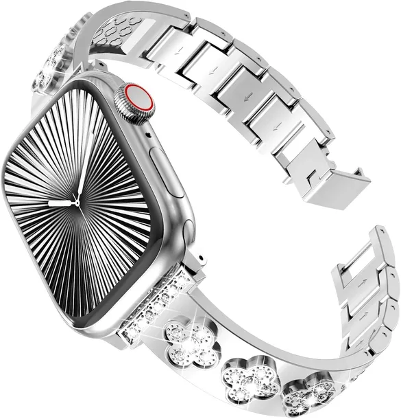 CHANCHY 42mm (seria) 41mm 40mm 38mm do paska Apple Watch dla kobiet, bransoletka z diamentowymi strasami ze stali nierdzewnej, metalowy pasek do zegarka Apple Watch SE, seria 10 9 8 7 6 5 4 3 2 1, srebrny