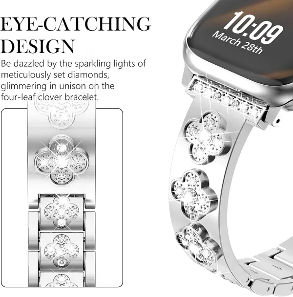 Jasne diamenty- Eleganckie paski do zegarka Apple Watch mają motyw szczęśliwej koniczyny i cztery liście ozdobione błyszczącymi, przezroczystymi kryształami, które podkreślą Twój blask każdego dnia.