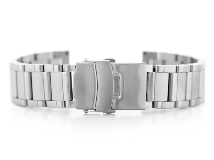 Stalowa bransoletka do zegarka wysokiej jakości w kolorze srebrnym - powlekana metodą PVD.