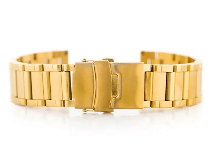 Stalowa bransoletka do zegarka wysokiej jakości w kolorze złotym - powlekana metodą PVD.